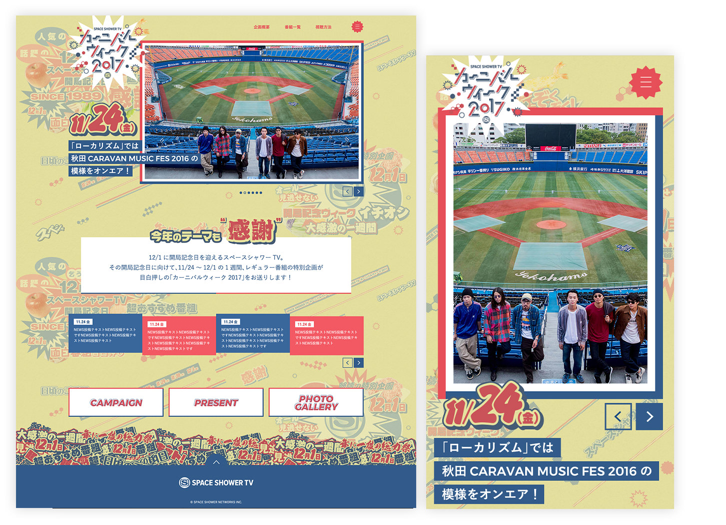 スペースシャワーTV開局を記念して、1週間に渡り、特別番組を放送。サイトではフォトギャラリーや各番組ページの紹介、イベント告知など幅広く展開