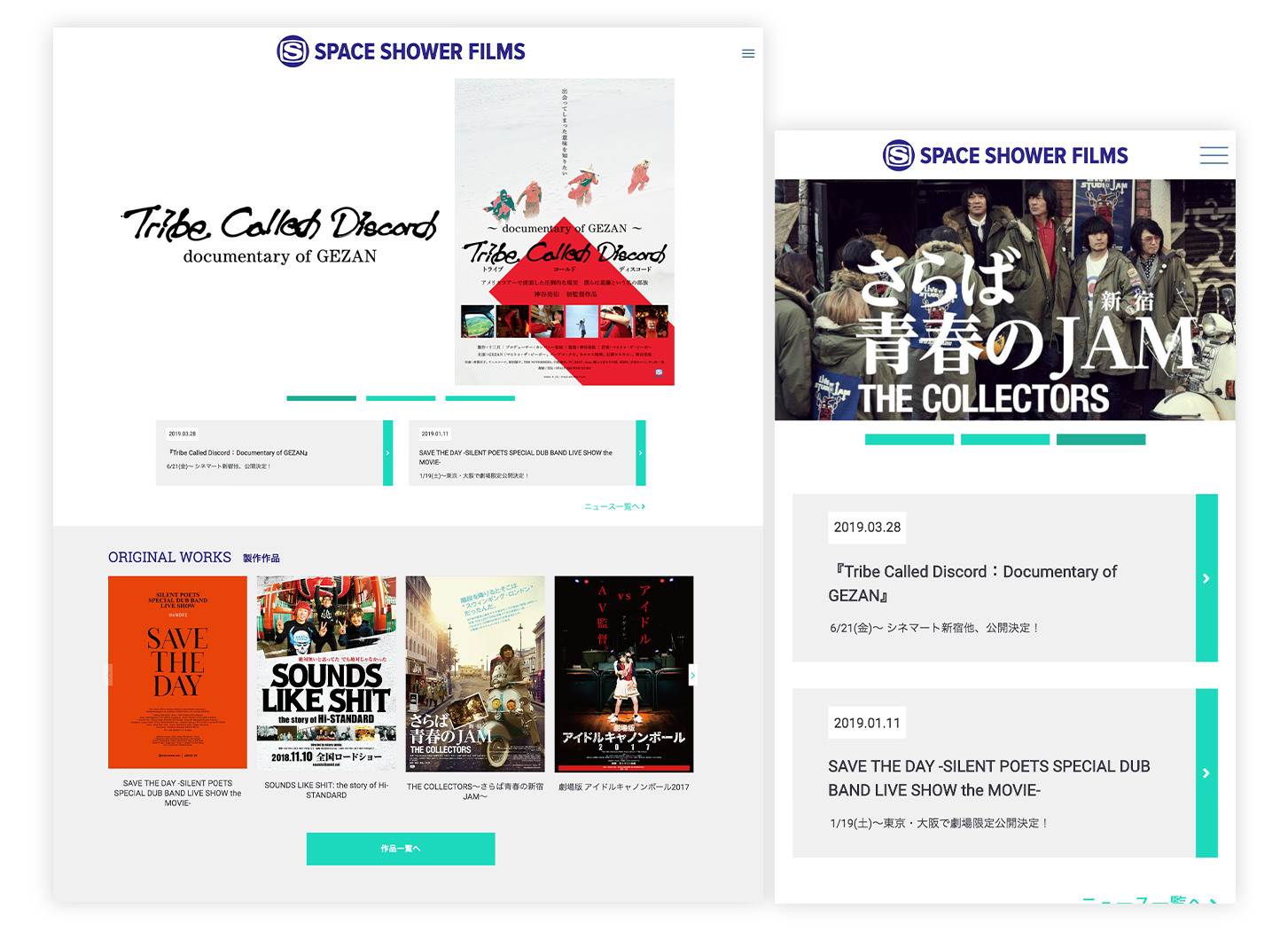 SPACE SHOWER FILM の事業化に合わせたポートフォリオサイト / CMSでの運用を前提とし、上映の際はタイムテーブルなどの展開も可能な作りに。