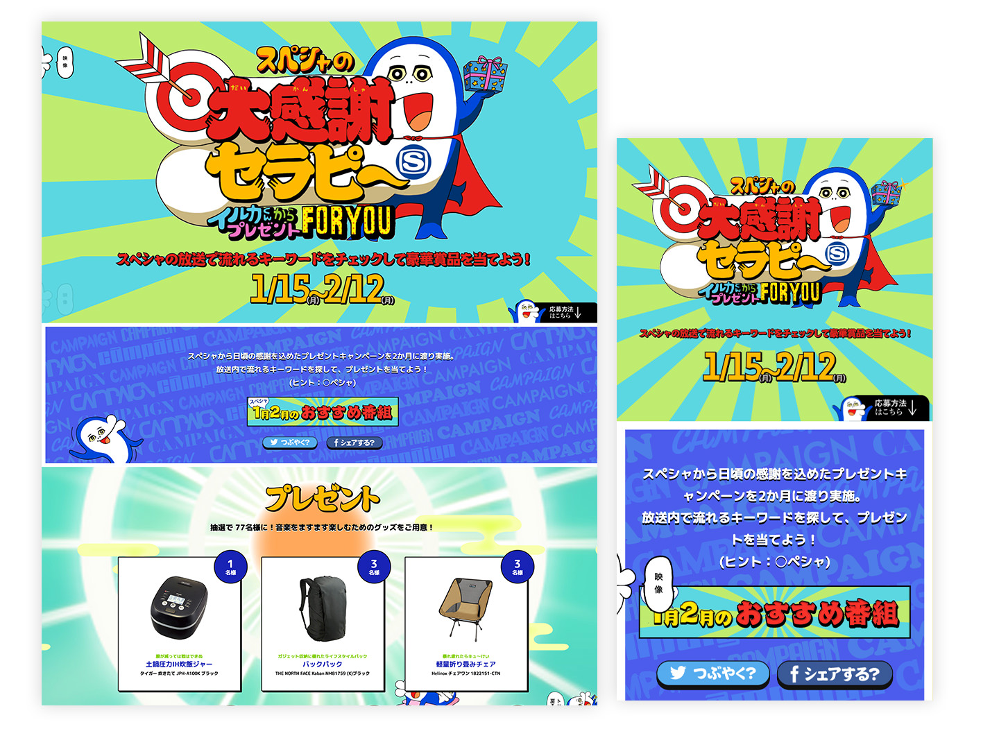 AC部にデザインの依頼を行い、AC部のキャラクター「イルカくん」をモチーフにした販促プレゼントキャンペーン。サイトディレクションと運用を担当。